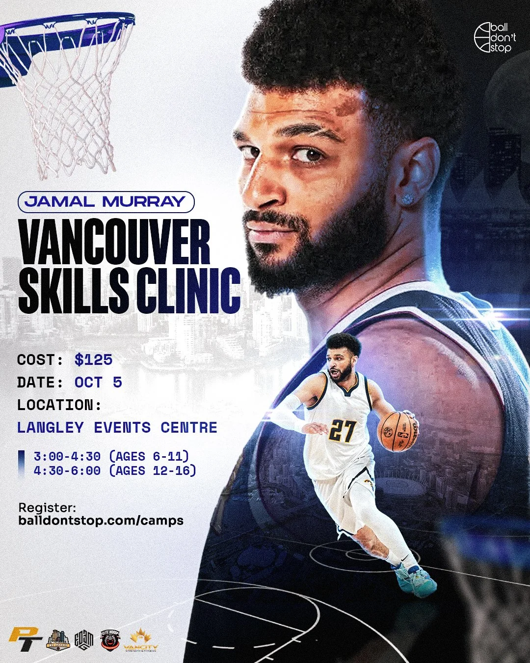 CLICK REGISTER BELOW TO SECURE YOUR SPOT FOR THE JAMAL MURRAY YOUTH SKILLS CLINIC ON OCTOBER 5. Click here to buy ticketsSell tickets online with Ticket Tailor